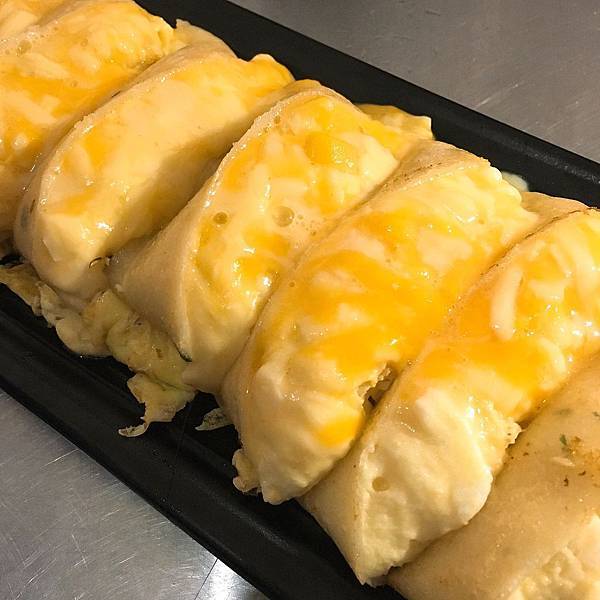 各位久等了,這不就進入今天的主角了嗎!餐點端到你面前的時候,根本是藝術品來的,擺盤的非常整齊好看,每一塊蛋餅的橫切面都完完整整滿滿的呈現在各位的面前~